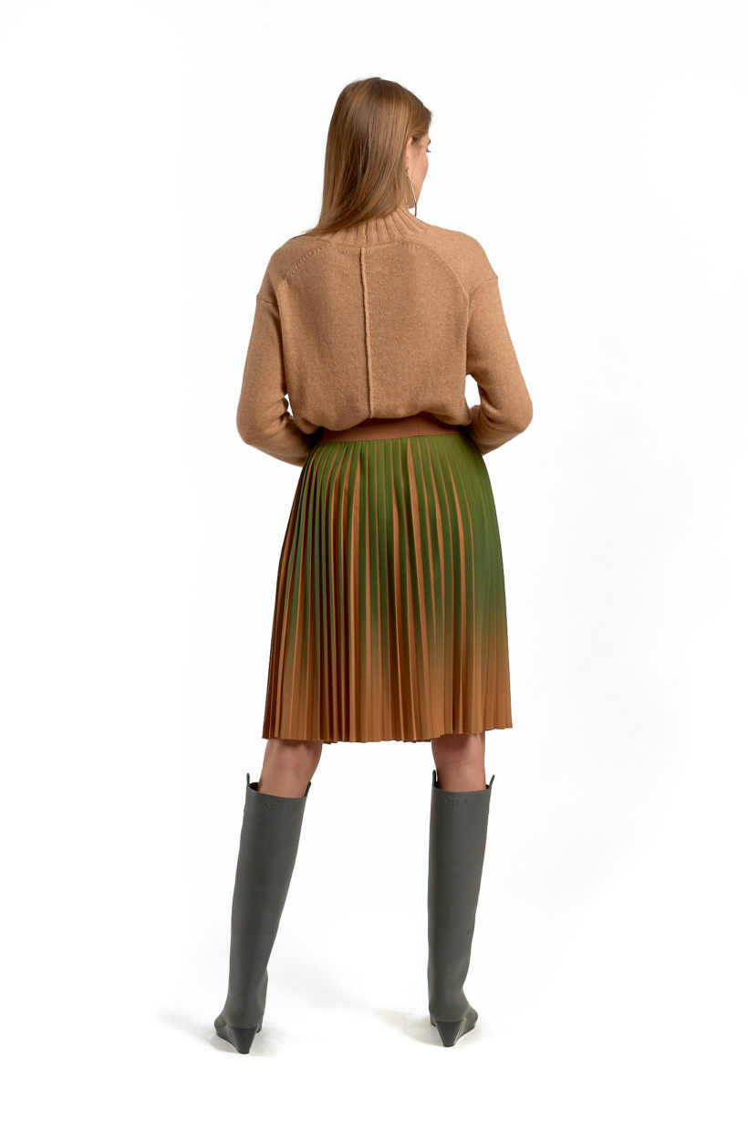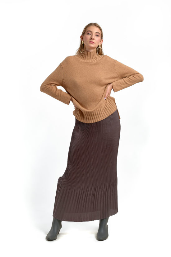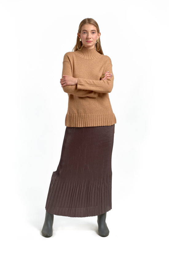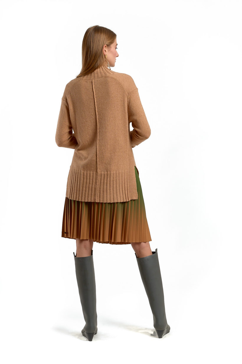 Szlachetna przędza i klasyczny, delikatny splot swetra nadają mu luksusowego charakteru. Zewnętrzny szew z tyłu podkreśla wertykalność sylwetki.