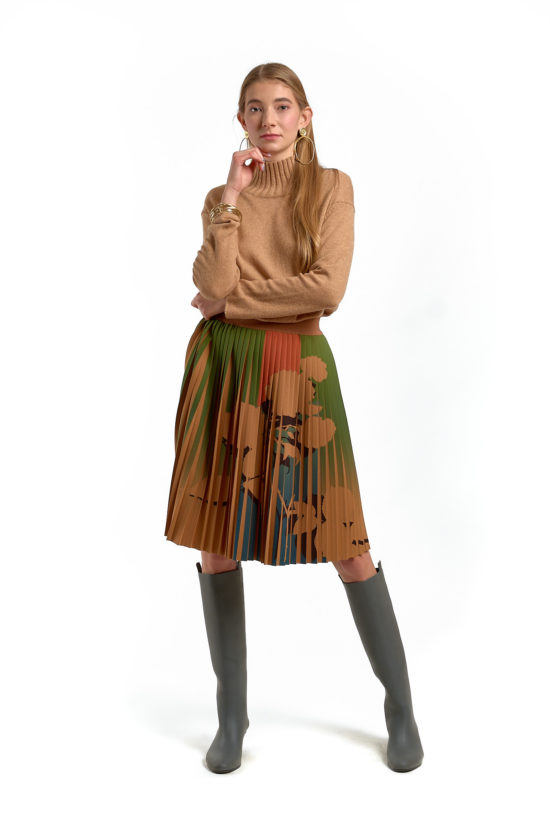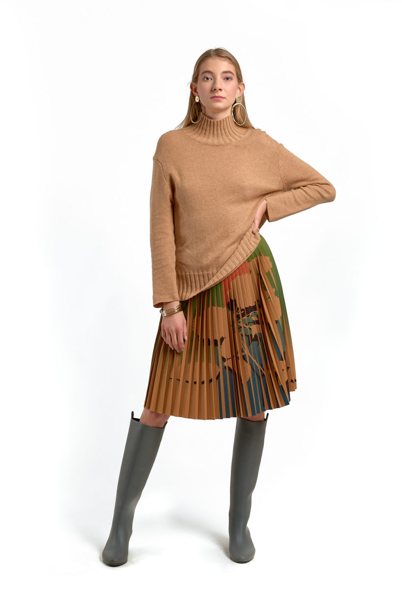 Prezentujemy go z naszymi spódnicami i kozakami ale też świetnie wygląda ze sportowymi butami, botkami oraz z jesiennym płaszczem.